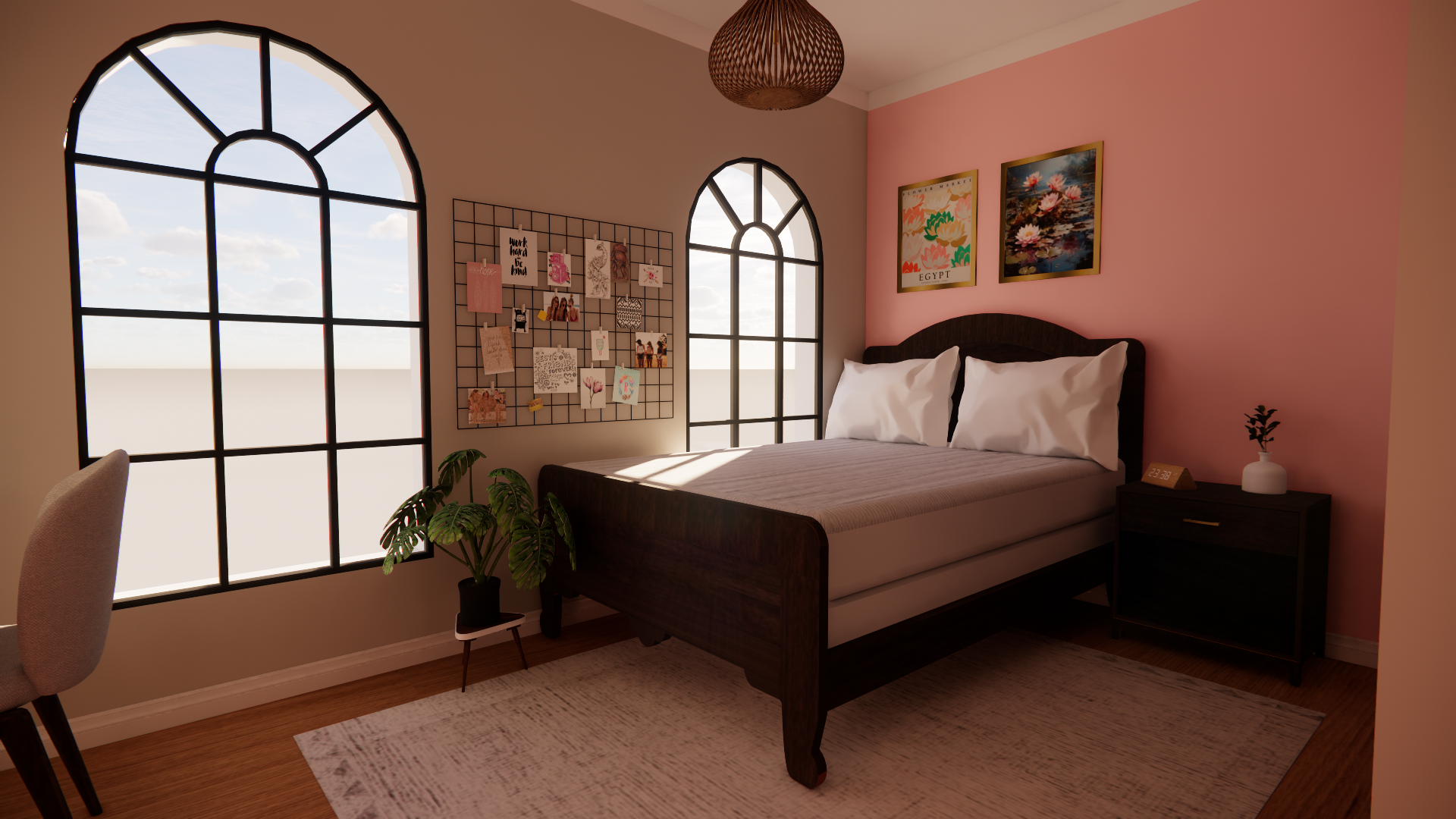 This project is for a women named Amina El-Sayed who was hypothetical. She lives with her daughter, Yara (14) and her mother, Samira (70). She has a condition where she has severe asthma and chemical sensitivity. During the process of this design there were major requirements that came into place when designing for Amina. I designed her home based off of specific requirements of VOC-free materials, high-efficiency air filtration, natural textiles, biophilic elements, and a designated meditation space.